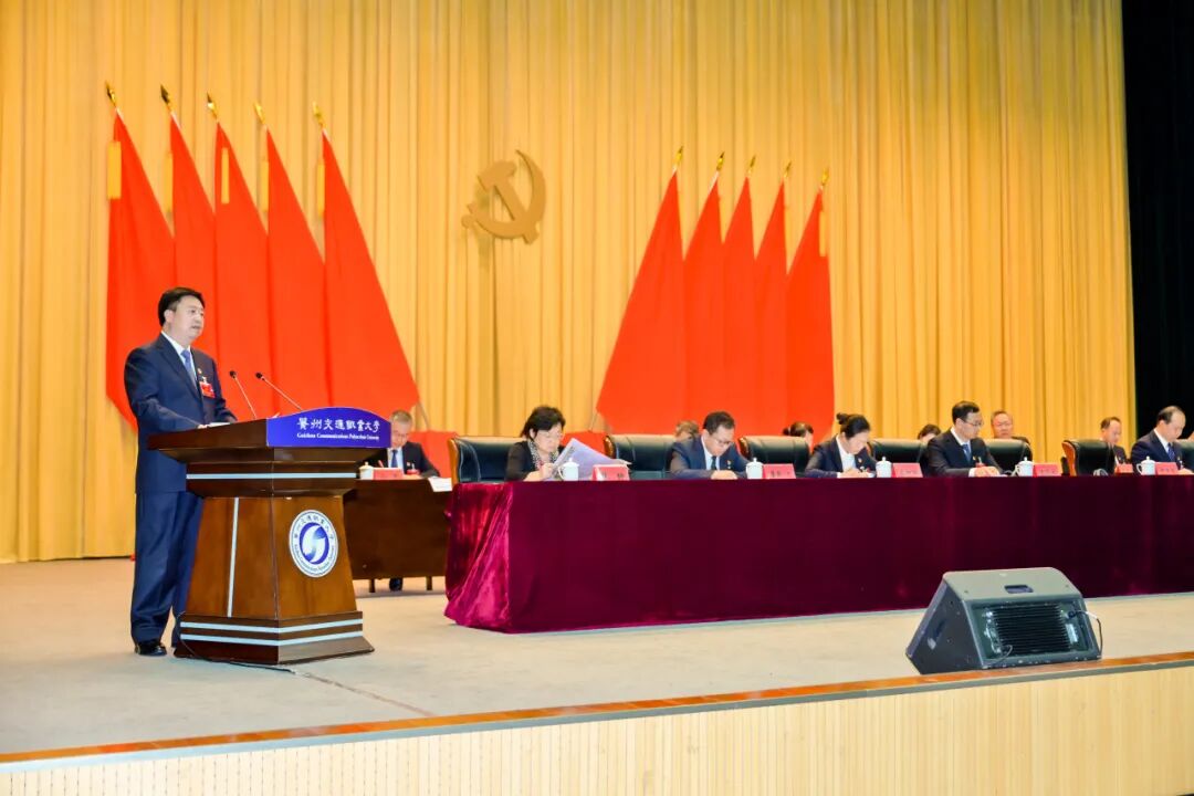 校党委书记何兴发同志代表中国共产党贵州交通职业大学委员会作题为《立足新起点 锚定新目标 开启新征程 为全面建设高水平职业本科大学而努力奋斗》的工作报告
