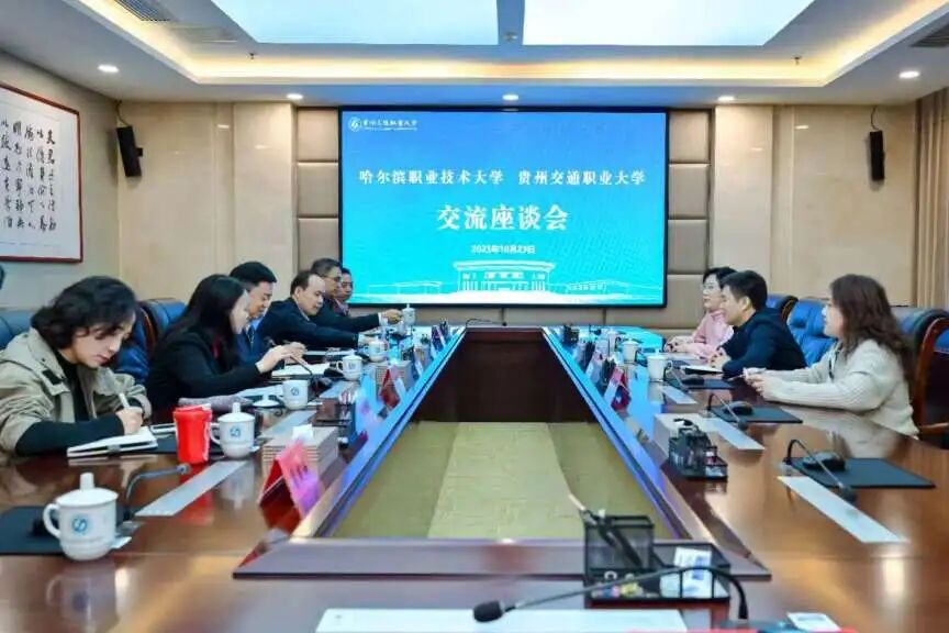 座谈会上,何兴发对刘建国一行的到来表示热烈欢迎,并简要介绍了学校历史与办学特色。何兴发表示,贵州交通职业大学与哈尔滨职业技术大学同为近期升格的职业本科院校,具备相似的发展背景与合作基础。希望双方以此次交流为起点,积极探索校际合作新思路,通过干部互挂、教师互访、学生互派等方式,进一步拓展在课程共享、教材共享、团队共享、平台共享、成果共享等方面的合作路径,以“三互五共”推动两校合作向更宽领域、更深层次发展。