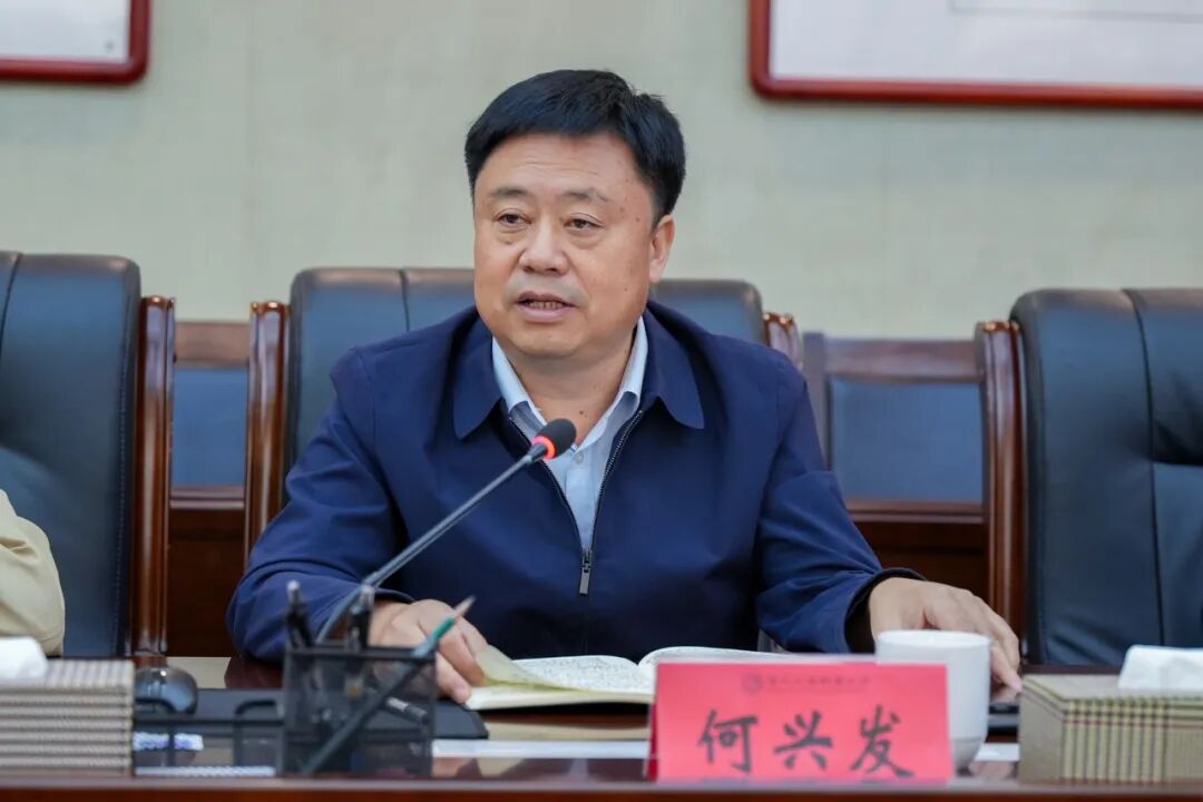 何兴发对刘洪波一行的到来表示热烈欢迎。何兴发简要介绍了学校的发展历程,并从党建和高质量发展等方面介绍了学校未来五年的办学思路。何兴发表示,新疆交通职业技术大学办学历史悠久,办学经验和创新做法值得贵州交通职业大学学习和借鉴。当前,职业教育高质量发展正进入新的赛道,两校唯有打开校门、互学互鉴,才能把“大有可为”转化为“大有作为”,期待双方以此次座谈为起点,建立常态化、长效化的合作机制,在党建联建上同题共答,在专业建设上资源共享,在师资培训上平台共建,在社会服务上品牌共塑,在学生培养上成果共赢,共同书写“教育强国、职教先行”的时代答卷。