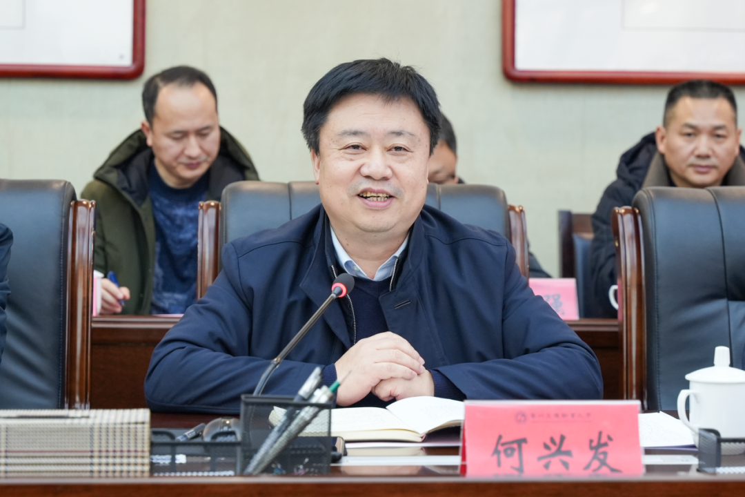 会上,何兴发对罗仕凯、刘刚一行的到来表示热烈欢迎,对长顺县一直以来对学校的关心支持表示衷心感谢。他表示,贵州交通职业大学始终坚持“贴近政府、行业、产业、市场、百姓”的办学理念,把服务区域经济社会发展作为办学的出发点和落脚点。长顺县作为黔中经济区、黔中核心城市群的重要组成部分,区位优势显著,发展势头强劲,此次与长顺县人民政府签约合作,是学校对国家职业教育改革号召的积极响应,也是深化产教融合、拓展社会服务领域的重要举措。学校一定认真抓好协议落实,做好实地调研,细化合作方案,完善保障工作,与长顺县携手打造校地合作新典范、产教融合新标杆,实现优势互补、互利共赢。